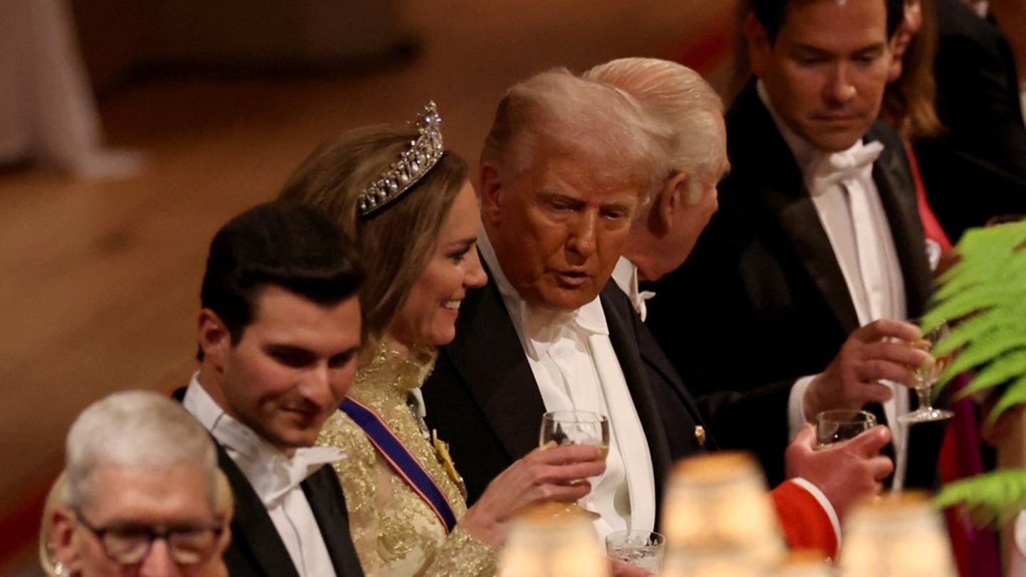 Trump nahm Platz zwischen König Charles III. und Kate. Für ihn dürfte es vermutlich ein besonders großes Vergnügen gewesen sein, den Abend mit der Prinzessin als Sitznachbarin verbringen zu können. Schon kurz nach seiner Ankunft auf Schloss Windsor soll der Präsident der Vereinigten Staaten laut mehrerer US-Berichte zu Prinz Williams Ehefrau gesagt haben, wie „wunderschön, so wunderschön“ sie doch sei.